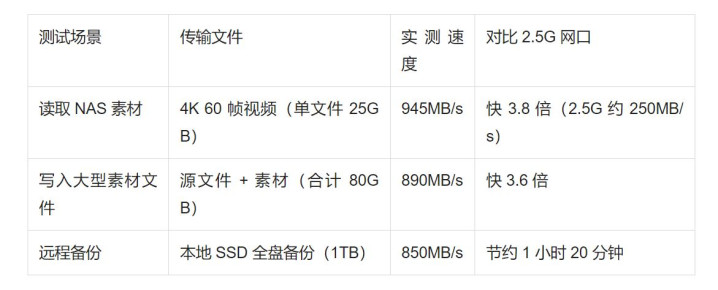 从实测的传输速率表现来看,这个速度完全不用把NAS的素材下载到本地就可以很流畅的实现媲美本地盘的体验了,所以万兆网口的意义其实我认为对于内容创作者来说,是个不可或缺的重要的配置。