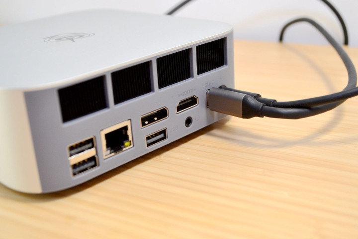 关于迷你主机的接口,因为机身小,很多对迷你主机的接口有偏见,其实,迷你主机的接口真的比现在很多台式机的主板的接口要更先进,比如USB4接口,很多台式机都没有,SER9 Max的接口几乎是满配的,一颗全功能 USB4(40Gbps)、一颗HDMI 2.1和一颗DP 2.1,可以同时外接三块显示屏,组成三屏异显,另外,还有 2 个 USB 3.2 和 1 个 普通的Type-C接口,USB4 接口,除了可以传输数据,还能一线连,外接支持触控的便携式显示器用,支持最高输出4K 120Hz的显示器,还能反向给主机供电(65W),这颗接口很强。HDMI 2.1和DP 2.1 这两个接口,可以支持到最高 4K 240Hz 显示器扩展,接口给到的都是满配的。