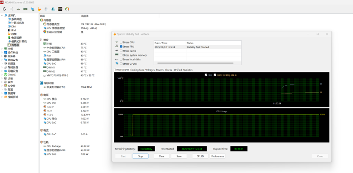 零刻在做迷你主机方面,做了好多年了,这次SER9 Max依然延续了 MSC2.0 散热系统 + VC 均温板组合,我是特别在意迷你主机散热的,因此,我觉得散热其实比迷你主机单纯堆配置还重要,零刻SER9 Max这款迷你主机的散热做得怎么样呢?通过AIDA64软件FPU单烤测试,烤机十分钟,可以看到CPU温度只有75℃,除了CPU,硬盘和内存的温度控制的也很出色,硬盘和内存的温度烤机全程也只有40℃左右,这个散热表现,要好于市面上绝大多数的迷你主机。