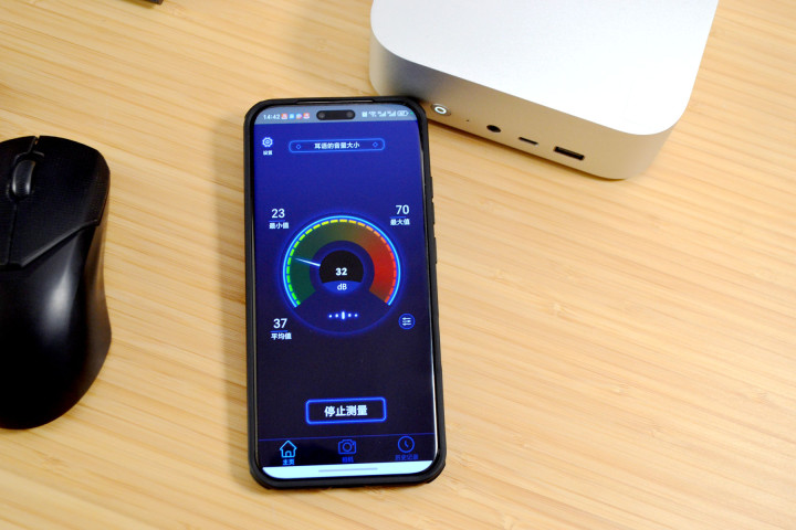 而最让我满意的地方,我觉得是在全程烤机过程中,迷你主机的噪音控制的特别好,全程噪音没有超过35分贝,高负荷运行状态下,它的噪音比家里冰箱的声音还要低,这个概念大家可以脑补一下,说真的,我用过的最好的笔记本,在噪音控制方面也达不到这个效果,真的在噪音控制方面,已经可以媲美苹果系的产品了。